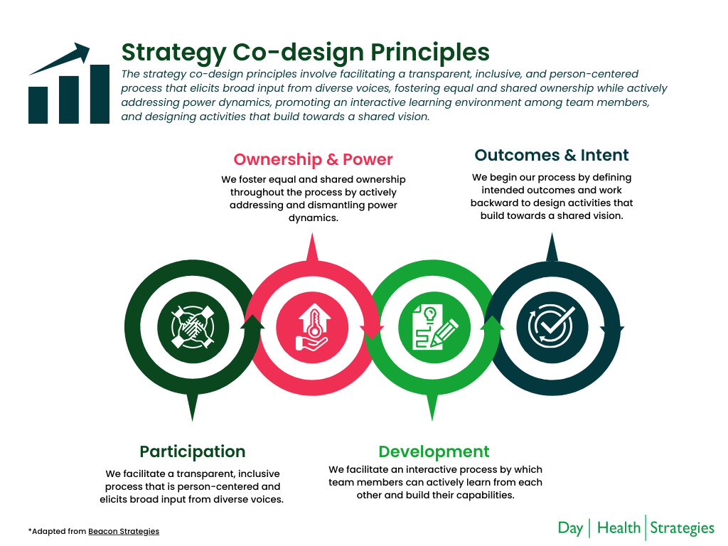 At Day Health, we're committed to transforming the healthcare system to be equitable, patient-centered, affordable, and high-performing for all. Our broad range of services includes strategy design and execution; organizational development/capacity building; and program design, development, implementation, monitoring, and evaluation. We strive to partner with clients whose organizational values align with our own and who are committed to making a sustainable, positive impact within their communities. Learn more about our services here.